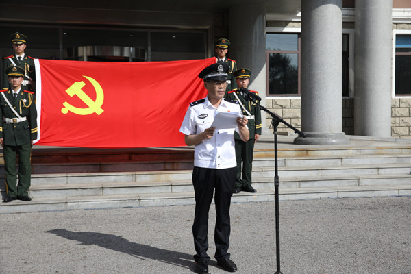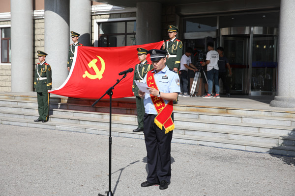 会上,全体党员面对鲜红的党旗,庄严举起右拳重温了入党誓词;市局党委委员、副局长王东同志宣读了《关于表彰2017-2018年度市局机关“先进党组织”、“优秀共产党员”、“优秀党务工作者”的决定》;市局领导为受表彰的“先进党组织”、“优秀共产党员”、“优秀党务工作者”代表进行了颁奖;交警支队事故处理大队大队长刘洪波、督察支队副支队长刘学兵、指挥中心政治协理员王雨生作为优秀代表分别进行了表态发言。