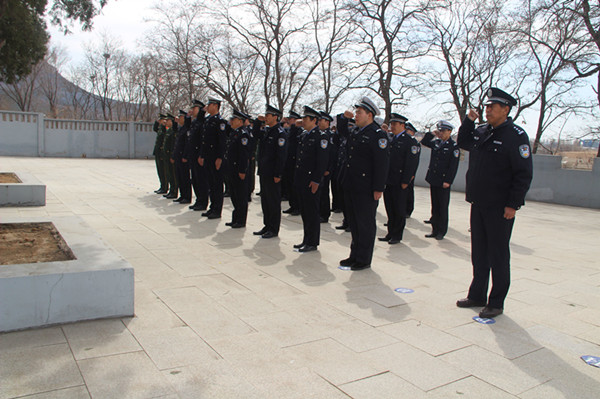 上午9时30分仪式开始。首先,由民警代表向革命烈士纪念碑、吴国林、刘国华、小赵烈士的墓碑敬献花篮,表达了对革命英烈的敬意。随后,组织全体党员民警重温入党誓词,全体民警代表高举右拳面向党旗和公安英烈墓碑庄严宣誓,宣誓活动令在场的每一位民警感到心潮澎湃。宣誓完毕后全体民警代表依次向烈士墓敬献鲜花。